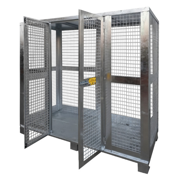 Armadio a rete per lo stoccaggio sicuro di bombole, realizzato in acciaio al carbonio zincato. Le sue dimensioni permettono di stoccare da 18 a 24 bombole e, essendo munito di rampa, rappresenta una soluzione completa per il deposito temporaneo di bombole contenenti gas pericolosi, come il GPL. La struttura è dotata di una tettoia per proteggere dal sole e dalla pioggia. Grazie al materiale e alle tecniche di zincatura/verniciatura, l'armadio può essere utilizzato all'esterno nel pieno rispetto delle normative vigenti. Le ante sono predisposte per l'applicazione di un lucchetto o di un altro sistema di chiusura, al fine di impedire l'accesso a persone non autorizzate. Il bloccaggio interno delle bombole avviene attraverso catene e moschettone di sicurezza. Questo contenitore rispetta le normative dettate dal D.Lgs. 81/08 inerenti lo stoccaggio del gas, oltre alle integrazioni del comune di riferimento e alle regolamentazioni dei vigili del fuoco, che si occupano di verificarne la messa in sicurezza. Il design del prodotto favorisce l'areazione e mantiene le bombole protette da urti. Ogni armadio viene fornito con etichettatura di identificazione e sicurezza. Per ulteriori informazioni sui armadi per bombole gas GPL è possibile consultare la sezione dedicata del sito.
