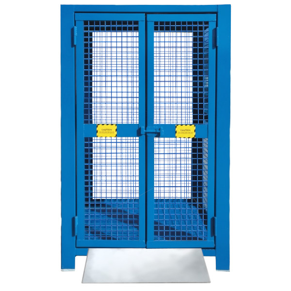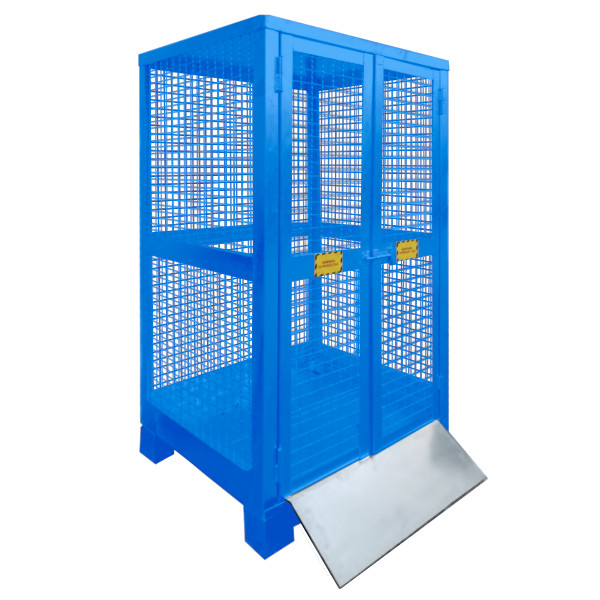 Armadio a rete per lo stoccaggio sicuro di bombole, realizzato in acciaio al carbonio verniciato a polvere. Le sue dimensioni permettono di stoccare da 9 a 12 bombole e, essendo munito di rampa, rappresenta una soluzione completa per il deposito temporaneo di bombole contenenti gas pericolosi, come il GPL. La struttura è dotata di una tettoia per proteggere dal sole e dalla pioggia. Grazie al materiale e alle tecniche di zincatura/verniciatura, l'armadio può essere utilizzato all'esterno nel pieno rispetto delle normative vigenti. Le ante sono predisposte per l'applicazione di un lucchetto o di un altro sistema di chiusura, al fine di impedire l'accesso a persone non autorizzate. Il bloccaggio interno delle bombole avviene attraverso catene e moschettone di sicurezza. Questo contenitore rispetta le normative dettate dal D.Lgs. 81/08 inerenti lo stoccaggio del gas, oltre alle integrazioni del comune di riferimento e alle regolamentazioni dei vigili del fuoco, che si occupano di verificarne la messa in sicurezza. Il design del prodotto favorisce l'areazione e mantiene le bombole protette da urti. Ogni armadio viene fornito con etichettatura di identificazione e sicurezza. Maggiori informazioni sugli armadi bombole gas sono disponibili nella sezione dedicata.