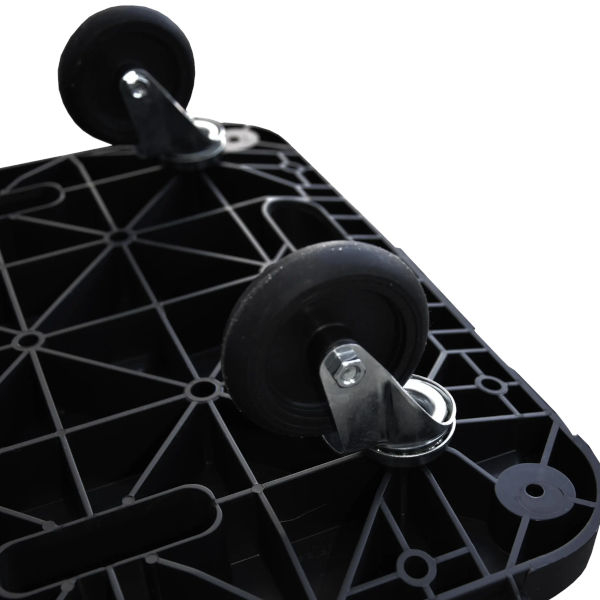Il carrellino 58 x 38 cm a pianale con struttura in polipropilene è una pedana con ruote in gomma girevoli, con sistema di aggancio per poter ampliare la piattaforma su tutti i lati e dotato di impugnatura per il trasporto, quando non in uso. I materiali utilizzati per la struttura sono stati specificatamente sviluppati per garantire eccellenti prestazioni in ogni condizione di utilizzo; pedana ideale per spostare mobiletti ed elettrodomestici in ufficio, a casa o in laboratorio. Portata testata 543 Kg ampliabile fino a 800 Kg grazie alla predisposizione che permette di inserire altre due ruote aggiuntive ( kit su richiesta ), che permettono di aumentare la portata del 50% in più.