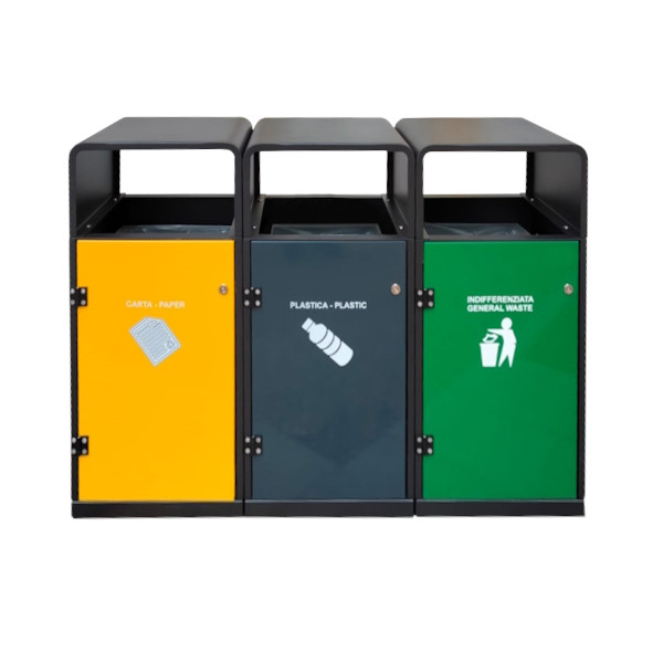 Il Cestino Modulare da 100 Lt è la soluzione ideale per la gestione professionale dei rifiuti in ambienti ad alta frequentazione. Progettato con un litraggio medio alto, questo nasce per la raccolta differenziata, perfetto per zone commerciali, aree di ristoro, uffici o spazi pubblici che richiedono un'efficienza superiore. Realizzato in acciaio zincato e verniciato a polveri epossidiche di alta qualità, ogni componente è stato zincato per garantire la massima resistenza agli agenti atmosferici e una lunga durata nel tempo, rendendolo un perfetto secchio da esterno. La viteria in acciaio inox rafforza ulteriormente la sua robustezza e affidabilità. Il design modulare è una caratteristica distintiva: i cestini possono essere affiancati per creare un'efficace isola ecologica, sia allineandoli in maniera lineare che creando forme più complesse come ad esempio la configurazione angolare. Personalizzabile con colori conformi agli standard UNI per una chiara identificazione del rifiuto. Ogni contenitore include un'anta frontale con cerniere e serratura a chiave universale, facilitando le operazioni di svuotamento e manutenzione. All'interno, il contenitore estraibile in lamiera zincata semplifica ulteriormente la gestione quotidiana dei rifiuti. Per la massima stabilità e sicurezza, il cestino è predisposto per il fissaggio a terra. Grazie alla sua struttura solida e al design versatile, il Cestino Modulare si adatta perfettamente a qualsiasi contesto, potendo essere utilizzato anche come un semplice contenitore a tinta unita, senza rinunciare a resistenza e funzionalità.