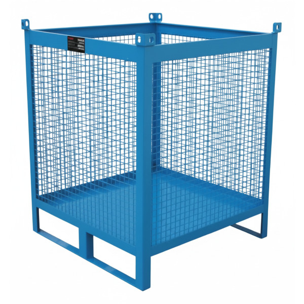 Contenitore in rete metallica con dimensioni di 1200 x 800 x 850h mm, verniciato con smalto RAL 5015. Particolarmente adatto allo stoccaggio e alla movimentazione di particolari pesanti solidi. Presenti alla base 2 traverse per garantire lo stoccaggio su scaffalature. Possibilità di sovrapporre piu’ unità fra di loro oltre al sollevamento e la movimentazione ( a vuoto ) tramite catene ancorate agl'anelli superiori. Altezza vasca 650 mm.