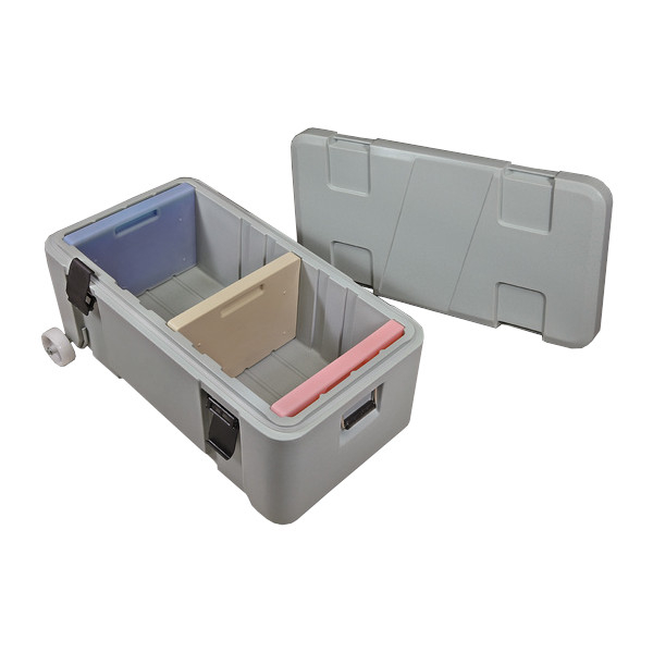 Contenitore isotermico rigido ad apertura superiore, prodotto con tecnologia rotazionale che consente di fabbricare oggetti privi di spigoli, giunzioni e saldature. Questo contenitore isotermico risulta quindi molto robusto e allo stesso tempo efficiente dal punto di vista del mantenimento termico.