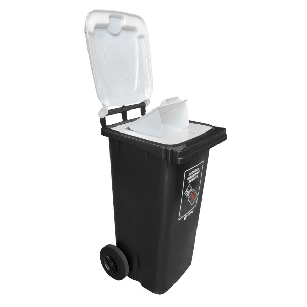 Vasca e coperchio stampati ad iniezione e realizzati in polietilene alta densita' (HDPE) di prima fusione, garantito e certificato. Attacco a pettine ricavato per fusione sul bordo anteriore della vasca, assenza di bordi taglienti e spigoli vivi. Ruote a naso in gomma piena D. 200 mm. e assale in acciaio zincato elettroliticamente. Appositamente progettato per la raccolta dei medicinali scaduti nel rispetto delle norme antinfortunistiche. Dotato di un ripiano in ABS con apposito cassetto tronco piramidale basculante che non consente nessun tipo di contatto con l'interno del contenitore stesso. Dimensioni bocca cassetto mm 240x160. Materiale totalmente riciclabile, resistente ai raggi U.V. e infrarossi, agli acidi e alcali, alle alte e basse temperature. Maniglie posteriori per ottimizzare la movimentazione ottenute in fase di stampaggio. Certificazione conforme alle normative vigenti. Coperchio con serratura con chiave triangolare. Personalizzazioni su richiesta : marchiatura a caldo; marchiatura a rilievo su corpo e coperchio, incisioni numeriche.