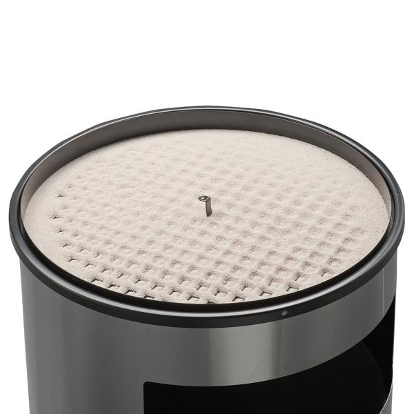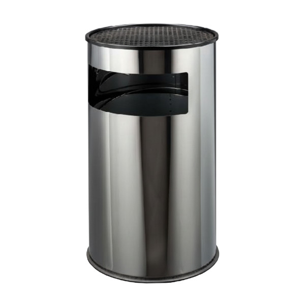 Contenitore gettacarte portacenere da interno ( o esterno ma sotto tettoia ) con capienza lt 50 e griglia posacenere. Struttura in acciaio inox AISI 430 con finitura brillante. Dotato di secchio interno in metallo galvanizzato munito di maniglia. Il posacenere superiore formato da una vasca di contenimento e una griglia superiore in metallo nero atta al contenimento di sabbia bianca ( 1 kg circa ). La base è in plastica.