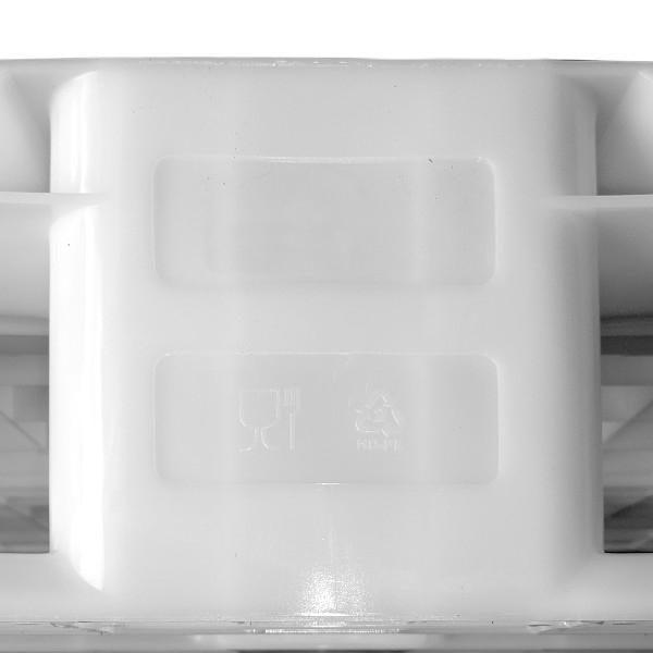 Pallet a 3 traverse alimentare, dotato di alta portata. Grazie, infatti, a 3 aperture laterali, è possibile rinforzare ulteriormente la struttura con dei parallelepipedi in ferro che ne aumentano notevolmente la portata statica, dinamica e su rack. Stampato ad iniezione in HDPE (Polietilene ad alta densità), materiale completamente riciclabile, di prima fusione, garantito e certificato per uso alimentare; resistente ai raggi U.V. e infrarossi, alle alte e basse temperature; particolarmente indicato per celle frigorifere. È idoneo per il trasporto terrestre, aereo e marittimo; rispetta i requisiti fitosanitari previsti per gli imballaggi, conforme alla normativa internazionale ISPM-15 della FAO (International Standards for Phytosanitary Measures). È un prodotto che fa parte del circuito ecosostenibile in quanto realizzato con circa il 100% di materiale riciclabile.