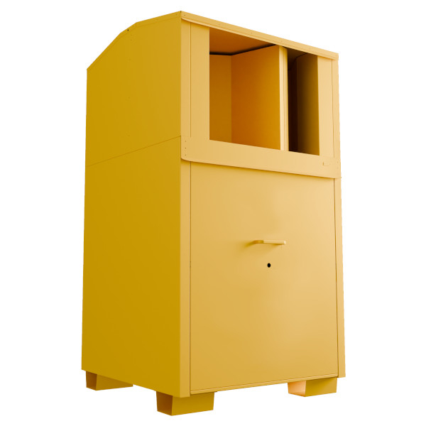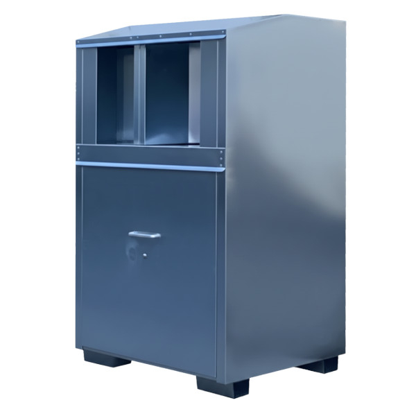 Sicurezza e Resistenza Industriale - Realizzato in robusto acciaio S235JR con zincatura a caldo (UNI ISO 1461:2009), il modulo è un punto di raccolta centralizzato estremamente resistente. La finitura a polvere garantisce resistenza meccanica e protezione UV, mantenendo un’estetica sobria e professionale nel tempo. Il sistema è concepito per essere anti-intrusione, proteggendo il contenuto da accessi non autorizzati e garantendo la massima sicurezza in ambienti scolastici o militari.