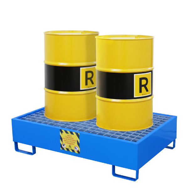 Vasca di contenimento da 260 litri con griglia, per lo stoccaggio e la messa in sicurezza di fusti. Struttura realizzata in acciaio al carbonio con 4 piedi, di rialzo e appoggio, per agevolare la movimentazione a vuoto con trans pallet o muletto a forche; predisposizione per il montaggio modulare di più di vasche. Trattamento superficie con vernice a polvere; griglia in acciaio zincato, asportabile per agevolare la manutenzione e la pulizia. Idonea al contatto con fluidi compatibili chimicamente con l'acciaio. Conforme a D.Lgs n° 152/06 del 03/04/2006 a tutela dell' ambiente, del suolo e sottosuolo, dell' acqua e messa in sicurezza di situazioni a rischio; D.P.R. 915 del 10.09.192 e successive modifiche. Rispetta la normativa WHG. Realizzate per la messa in sicurezza di 2 fusti da 220 litri e taniche.
