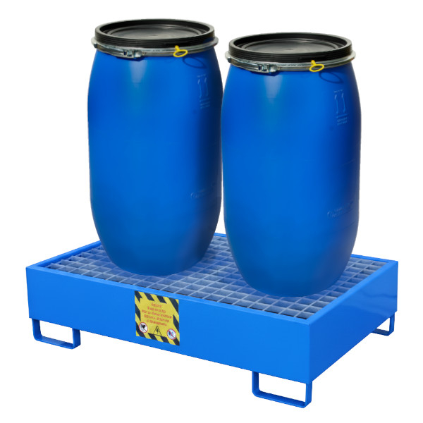 Vasca di contenimento da 260 litri di capienza, in acciaio al carbonio con trattamento esterno anticorrosione per la raccolta di sversamenti in appoggio su 4 piedi forcabili. La vasca di contenimento realizzata in acciaio al carbonio, allestita con rinforzi strutturali. Saldatura a controllo elettronico, trattamento anticorrosione e successiva finitura con smalto blu Ral 5015. Il Grigliato è realizzato in acciaio al carbonio zincato con maglie ad alta portata. Dotato di etichettatura di sicurezza anti infortunio come previsto dalle normative vigenti. Prodotto immatricolato e verificato in collaudo in conformità CE.