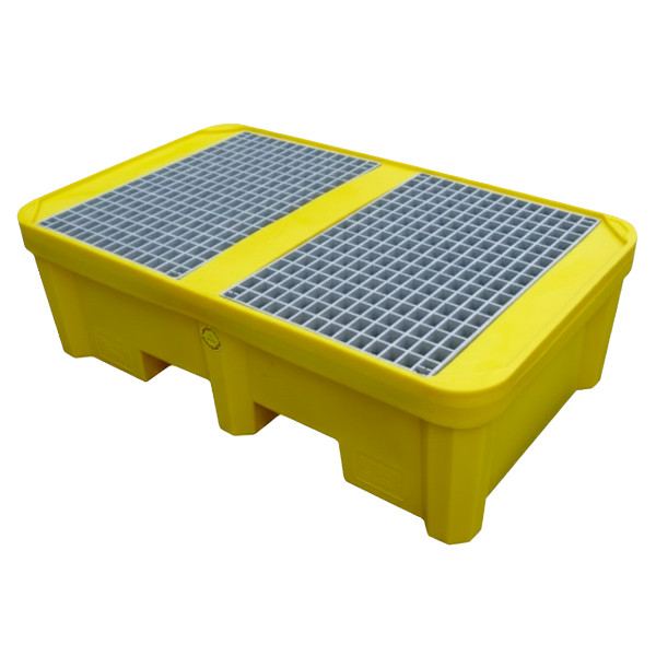 Vasca di contenimento con griglia da 305 litri, per lo stoccaggio e la messa in sicurezza di fusti taniche. Vasca in polietilene atossico stabilizzato U.V. di colore giallo roto-stampato, monolitico ovvero stampato in unico pezzo senza giunzioni. Struttura auto portante e rinforzata per resistere agli urti, resistente agli agenti chimici. Dotata di griglia in Polirpopilene asportabile per una facile pulizia; sormontabile a vuoto. Movimentazione con muletto e trans-pallets a vuoto. Utilizzata spesso per mettere a norma palestre, piscine, centri sportivi e spa. Rispetta la normativa per la messa in sicurezza dei prodotti chimici, evitando lo sversamento del liquido in caso di perdita. Conforme a D.Lgs n° 152/06 del 03/04/2006 a tutela dell' ambiente, del suolo e sottosuolo, dell' acqua e messa in sicurezza di situazioni a rischio; D.P.R. 915 del 10.09.192 e successive modifiche. Realizzate per la messa in sicurezza di 2 fusti da 220 litri e taniche.