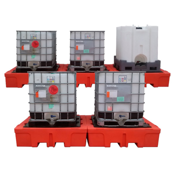 Vasca di contenimento con griglia, per lo stoccaggio e la messa in sicurezza di fusti taniche o IBC 1000 utilizzando il sistema modulare. Usata singola per 4 fusti o per contenitori vari. La vasca è predisposta per il collegamento di 2 o piú moduli mediante raccordo in polietilene con guarnizione in modo da realizzare delle piattaforme con capacitá idonea ai cubi IBC da 1000 litri. Il vantaggio di questo modello è la modularità e la possibilità di tenere i cubi IBC su una piattaforma alta 40 cm. Questo aumenta la sicurezza del personale e rende il prelievo piú comodo. Realizzate con stampaggio rotazionale in polietilene e pallet in polietilene nero. Resistente alla maggior parte degli acidi, delle basi e degli oli. Leggere e molto resistenti. Movimentabili con carrello elevatore e transpallet. Impilabili per risparmiare sul trasporto. Protegge il vostro sito di lavoro, il personale e l'ambiente.
