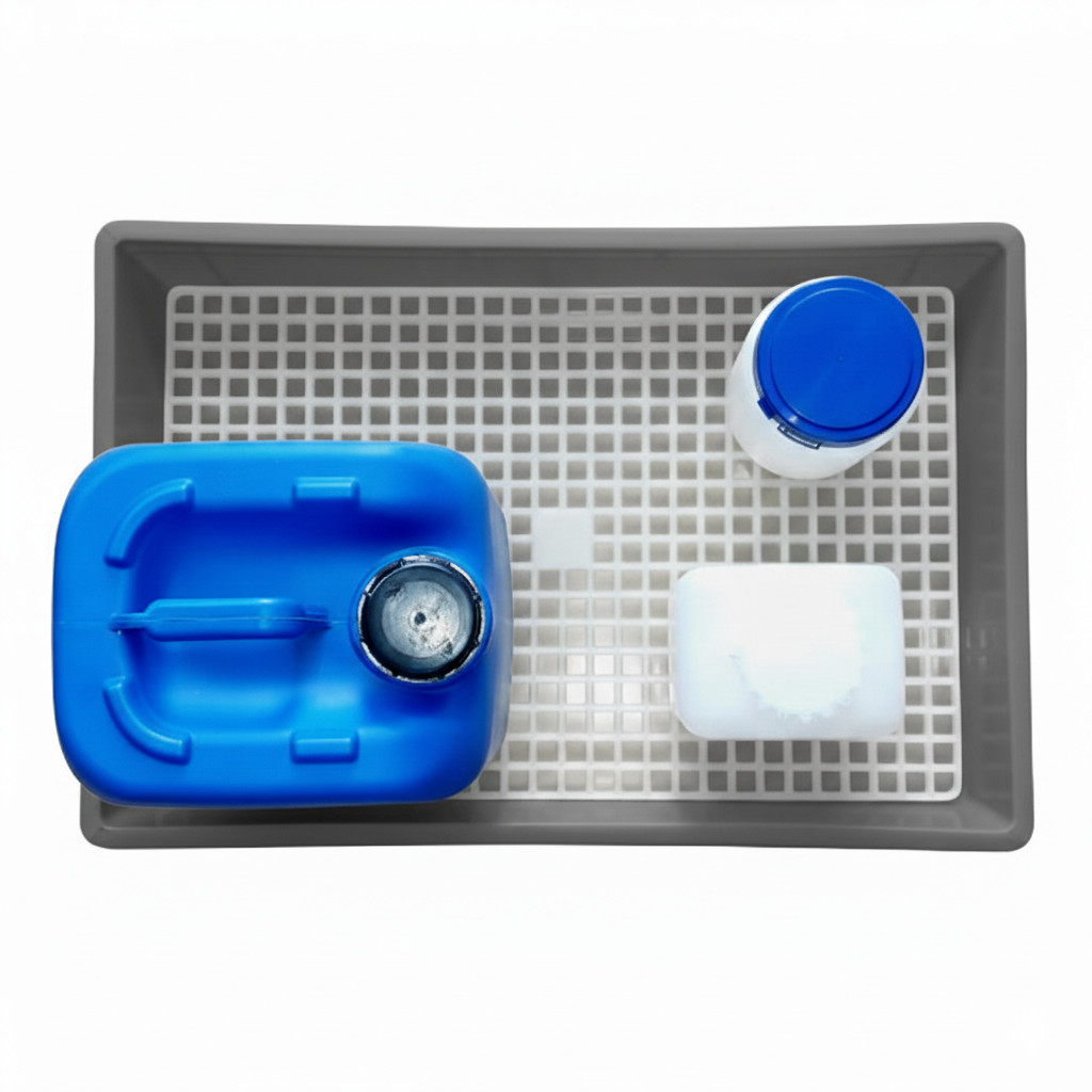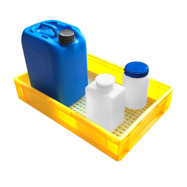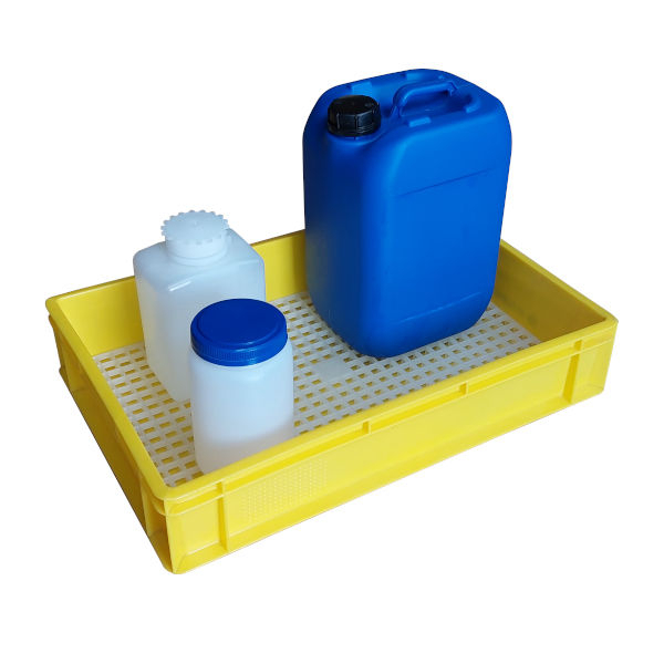Vasca di contenimento 23 litri con griglia, per lo stoccaggio e la messa in sicurezza di taniche e fustini. Vasca in polietilene ad alta densità di colore giallo, monolitico ovvero stampato in unico pezzo senza giunzioni, alla quale è possibile aggiungere come accessorio una grigli a di rialzo ( cod. 003943 ). Resistente agli agenti chimici. Dotata di griglia in Polietilene bassa densità asportabile per una facile pulizia; Conforme a D.Lgs n° 152/06 del 03/04/2006 a tutela dell' ambiente, del suolo e sottosuolo, dell' acqua e messa in sicurezza di situazioni a rischio; D.P.R. 915 del 10.09.192 e successive modifiche. Realizzate per la messa in sicurezza di taniche e fustini. Utilizzata spesso per mettere a norma palestre, piscine, centri sportivi e spa. Una delle più piccole vaschette antisversamento sul mercato, nel formato Europa 6040 per questo ideale per l'uso in laboratorio o in piccoli magazzini, adatta allo stoccaggio su scaffalature. Rispetta la normativa per la messa in sicurezza dei prodotti chimici, evitando lo sversamento del liquido in caso di perdita. Prodotto che entrerà a far parte del circuito ecosostenibile in quanto realizzato per circa il 100% di materiale riciclabile.