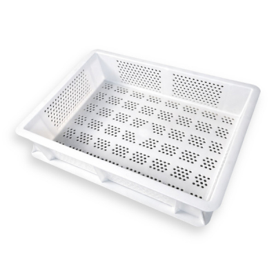 Dimensioni mm 400x300x100h Stampato in PE - Polietilene per alimenti Sovrapponibile, forata Piccolo formato A norma HACCP Prodotto non disponibileAvvisami appena torna disponibile -