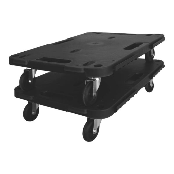 Il carrellino 58 x 38 cm a pianale con struttura in polipropilene è una pedana con ruote in gomma girevoli, con sistema di aggancio per poter ampliare la piattaforma su tutti i lati e dotato di impugnatura per il trasporto, quando non in uso. I materiali utilizzati per la struttura sono stati specificatamente sviluppati per garantire eccellenti prestazioni in ogni condizione di utilizzo; pedana ideale per spostare mobiletti ed elettrodomestici in ufficio, a casa o in laboratorio. Portata testata 543 Kg ampliabile fino a 800 Kg grazie alla predisposizione che permette di inserire altre due ruote aggiuntive ( kit su richiesta ), che permettono di aumentare la portata del 50% in più.