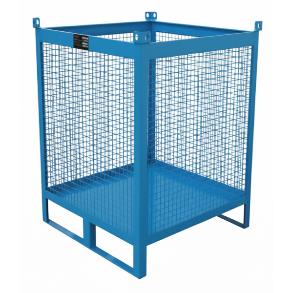 Contenitore in rete metallica con dimensioni di 1200 x 800 x 850h mm, verniciato con smalto RAL 5015. Particolarmente adatto allo stoccaggio e alla movimentazione di particolari pesanti solidi. Presenti alla base 2 traverse per garantire lo stoccaggio su scaffalature. Possibilità di sovrapporre piu’ unità fra di loro oltre al sollevamento e la movimentazione ( a vuoto ) tramite catene ancorate agl'anelli superiori. Altezza vasca 650 mm.