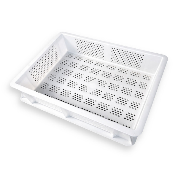 Contenitore forato professionale in PE (senza BPA) ideale per il settore alimentare (panificazione, ittico, gastronomia). Progettato per resistere a utilizzi intensivi in laboratori e celle frigorifere.