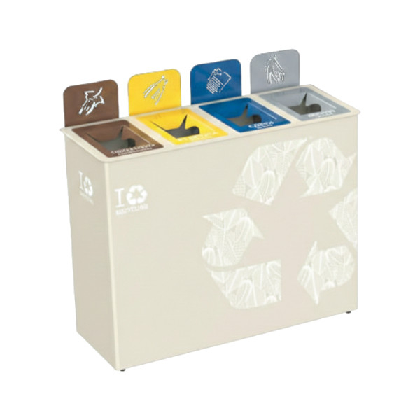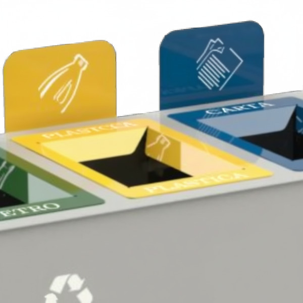 Mobile gettacrte capienza 200 Litri, compatto da interno, in un unica soluzione sono presenti 4 aperture per il conferimento dei rifiuti, suddiviso in 4 bocche con colori differenti preserigrafate con scritte tipologia rifiuto in due lingue e separatori interni in lamiera zincata. Un unico portello superiore permette il prelevamento dei sacchi interni facilitato anche dal braccio idraulico che trattiene lo stesso aperto e ne permette un agevole chiusura in sicurezza. Verniciatura a polvere di colore grigio. i colori identificativi delle bocche di carico sono 6: verde, giallo, grigio scuro, blu, celeste, marrone.