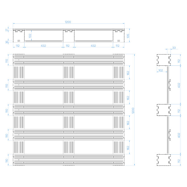Pallet in Acciaio 5 assi con misure 1200 x 1200 x 135h mm in acciaio zincato (disponibile anche in acciaio inox)