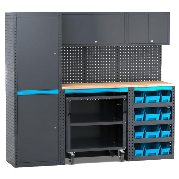 La parete attrezzata tipo G08 è la soluzione professionale per l'arredo industriale, progettata per garantire massima organizzazione in officine meccaniche, laboratori e postazioni di lavoro. Grazie al design componibile, questa configurazione offre un equilibrio perfetto tra stoccaggio pesante e superficie operativa.