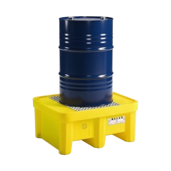 Vasca di contenimento con griglia con capienza di 225 litri, per lo stoccaggio e la messa in sicurezza di fusti taniche. Vasca in polietilene atossico stabilizzato U.V. di colore giallo roto-stampato, monolitico ovvero stampato in unico pezzo senza giunzioni. Struttura auto portante e rinforzata per resistere agli urti, resistente agli agenti chimici. Dotata di griglia in Polirpopilene asportabile per una facile pulizia; sormontabile a vuoto. Movimentazione con muletto e trans-pallets a vuoto.